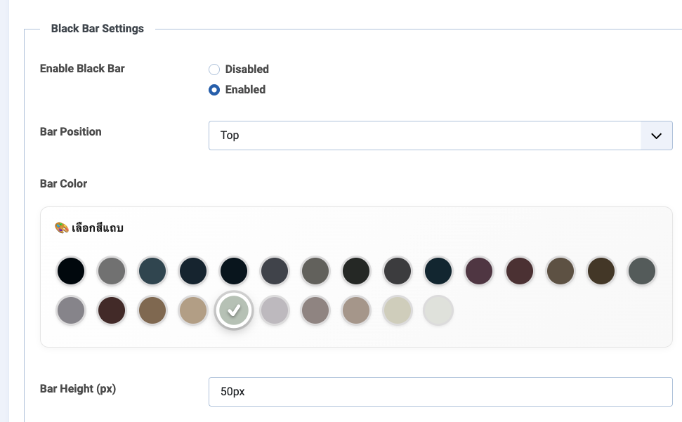 นอกจากนี้ยังสามารถเพิ่ม “แถบสีดำ” ด้านบนหรือด้านล่างของเว็บไซต์ เพื่อแสดงข้อความ รูปภาพ หรือโลโก้ ได้อย่างอิสระ พร้อมรองรับการเลือก ฟอนต์ภาษาไทยจาก Google Fonts อย่างครบถ้วน